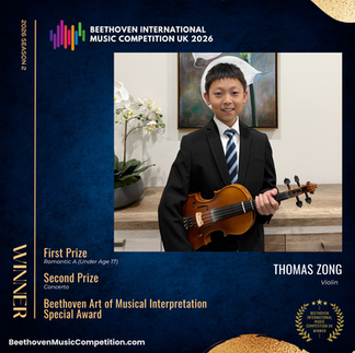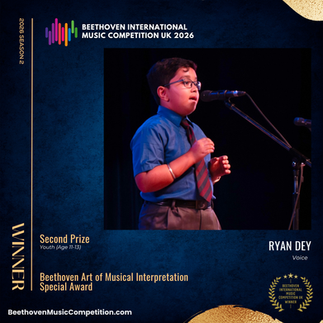 The Beethoven International Music Competition UK presents the award results for the 2026 Season 2, recognising musicians, composers, and ensembles from around the world for their achievements in performance and composition. This season reflects a diverse international participation across a wide range of musical disciplines.
