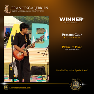 The Francesca Lebrun International Music Competition presents the award results for the 2026 Season 1, recognising musicians, composers, and ensembles from around the world for their achievements in performance, composition, and interdisciplinary music projects. This season reflects broad international participation across a variety of musical disciplines.