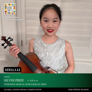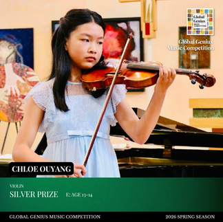 The Global Genius Music Competition presents the award results for the 2026 Spring Season, recognising musicians, composers, and conductors from around the world for their achievements across performance, composition, and ensemble work. This season reflects broad international participation across a wide range of musical disciplines.