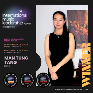 The International Music Leadership Award presents the award results for the 2026 Season 1, recognising musicians, composers, and performers from around the world for their achievements in performance and composition. This season reflects international participation across a range of musical disciplines.