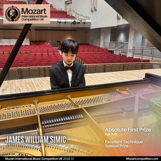 The Mozart International Music Competition UK presents the award results for the 2026 Season 1, recognising musicians, composers, and ensembles from around the world for their achievements in performance, composition, and film music. This season reflects broad international participation and a wide spectrum of classical disciplines.